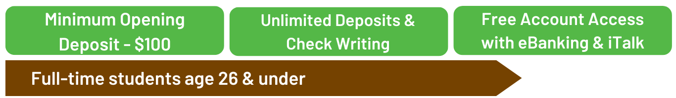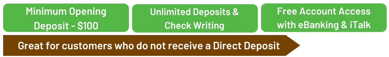 - Free 24-Hour account access through eBanking or 24-Hour Banking Anytime line